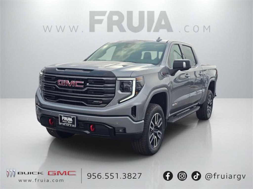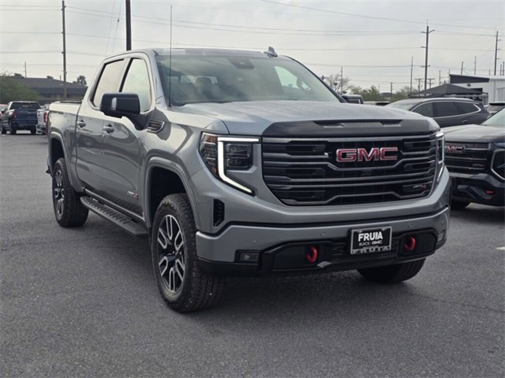 Sterling Metallic 2026 GMC Sierra 1500 AT4 4WD 10-Speed Automatic EcoTec3 6.2L V8 10-Speed Automatic, 4WD, Jet Black With Kalahari Accents Leather.