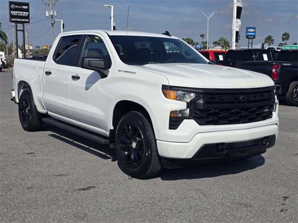 Clean CARFAX. Summit White 2023 Chevrolet Silverado 1500 Custom RWD 8-Speed Automatic 2.7L Turbo 8-Speed Automatic, Black Cloth.